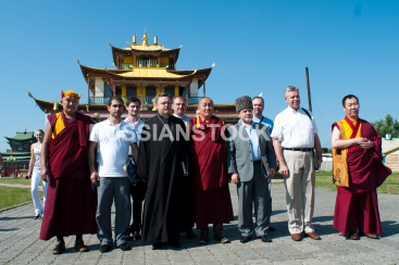 Улан-Удэ, 1 августа 2012. Протоиерей Всеволод Чаплин и Пандидо Хамбо-лама Дамба Аюшеев, глава буддийской традиционной Сангхи России, в Иволгинском дацане.